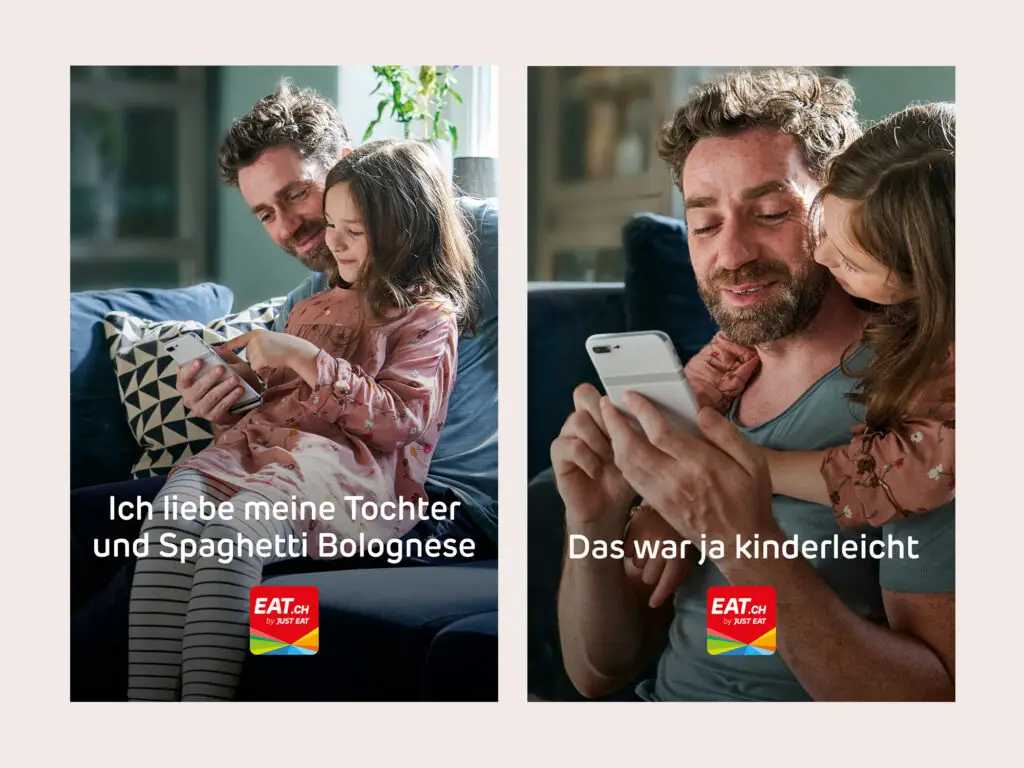 A cross-media campaign was designed and implemented to launch the new app from EAT.ch by Just Eat. The campaign focuses on a father and daughter, with the daughter charmingly showing him how easy and smart it is to order food using the app. The nationwide TV commercial “Kinderleicht” (Child’s Play) was complemented by extensive TV and online sponsorship as well as eye-catching mega posters and out-of-home motifs. The consistent multi-channel strategy led to a 34.2% increase in online orders during the campaign period.